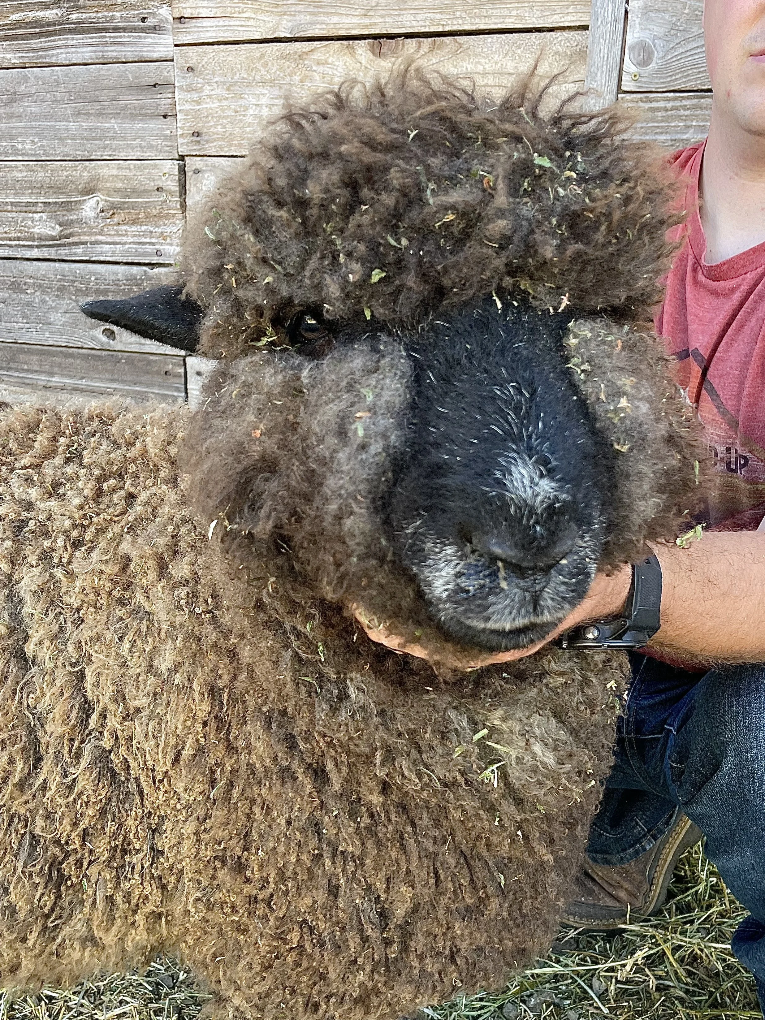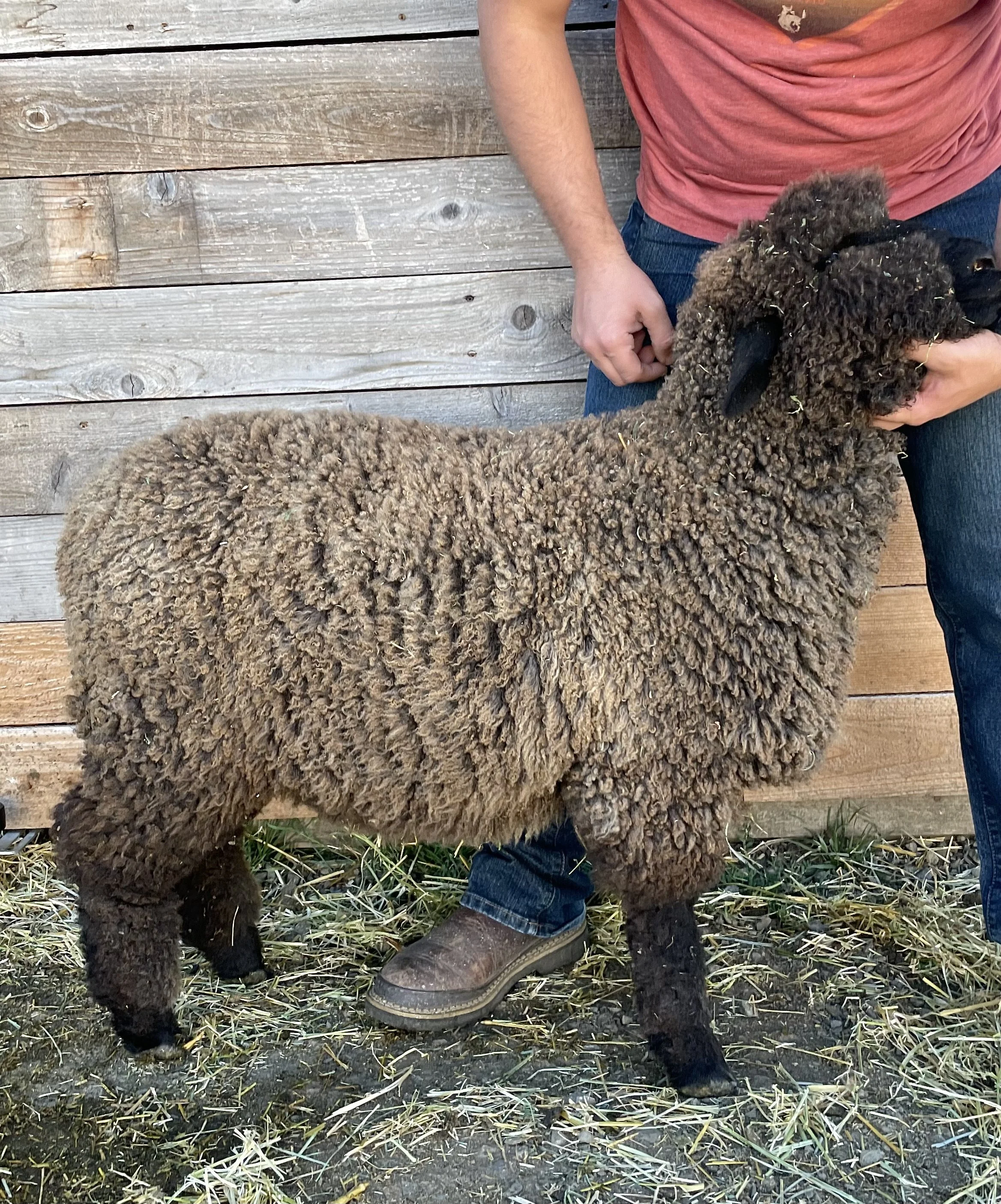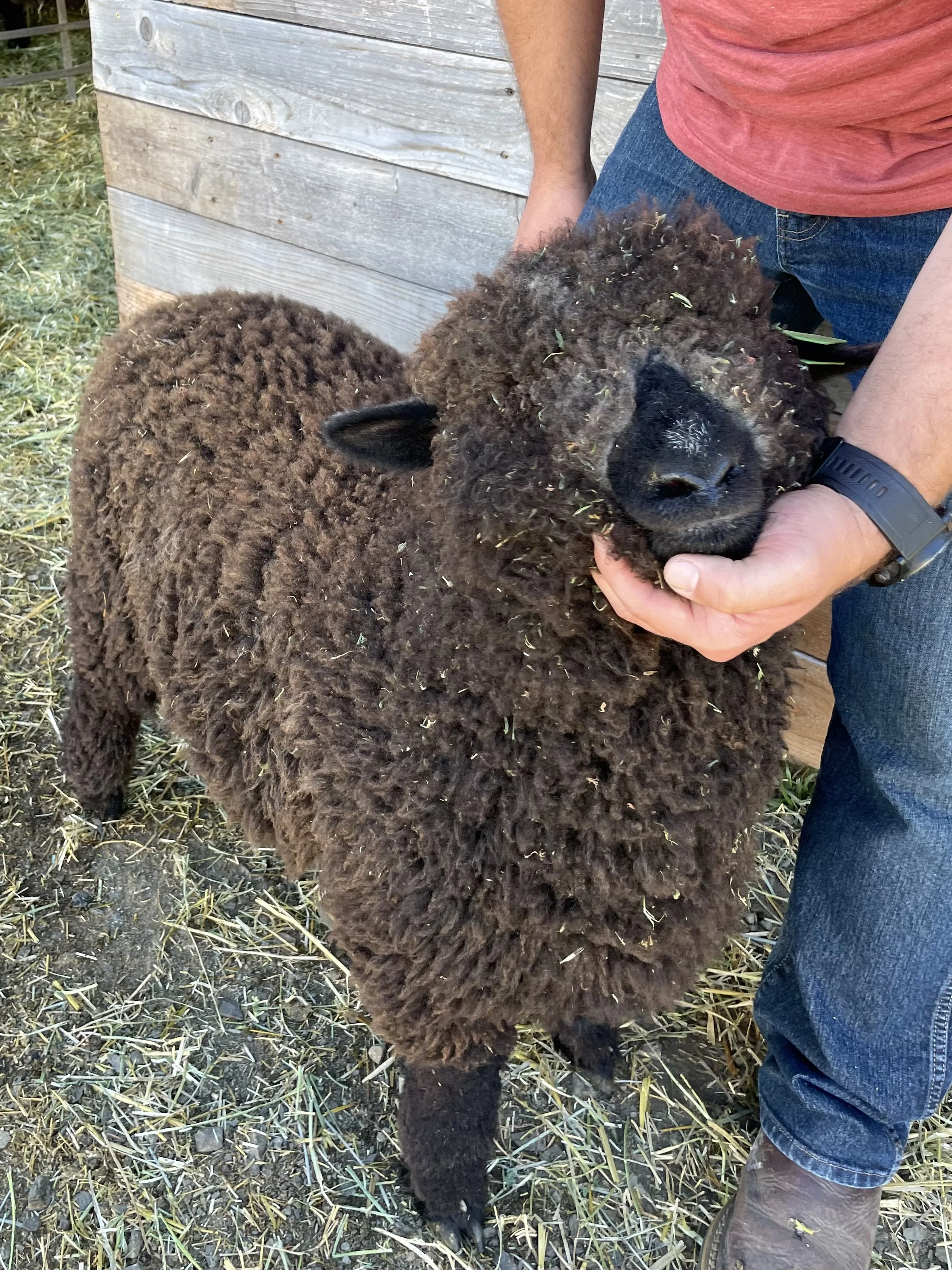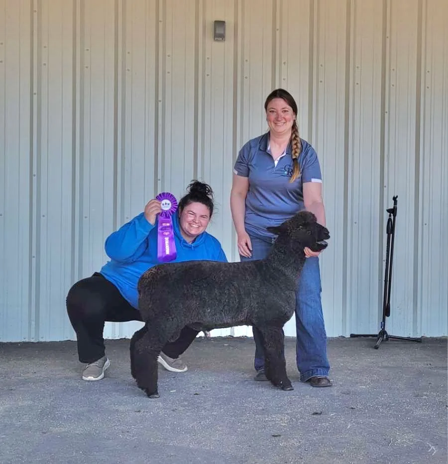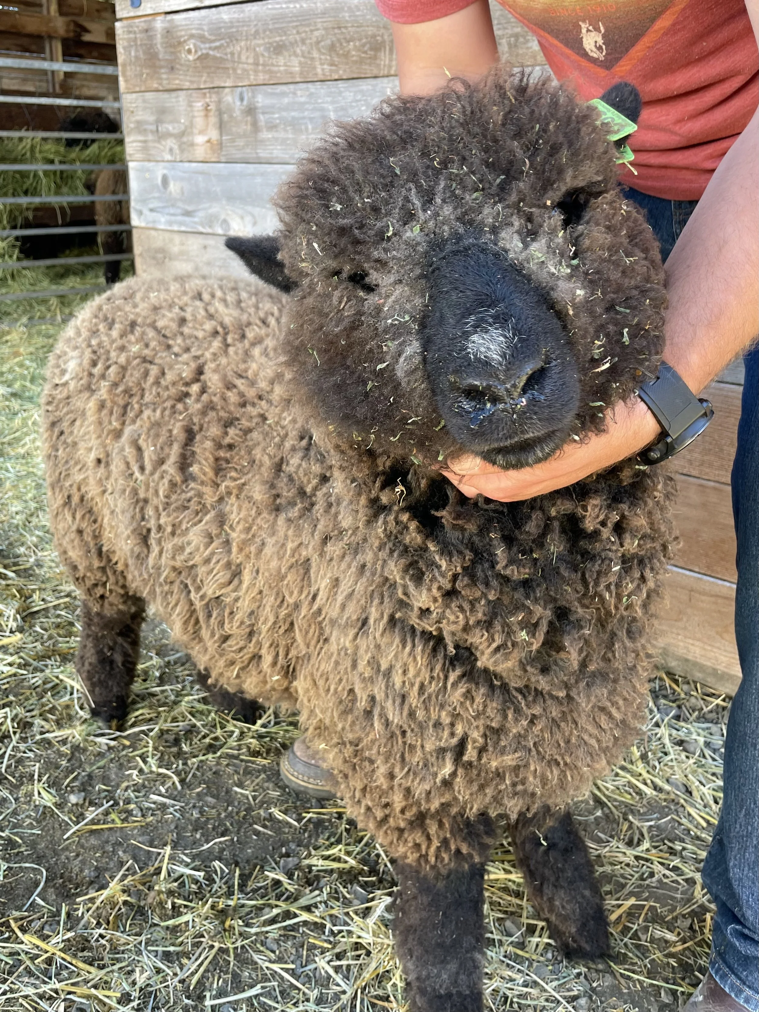 This guy is built! I am loving his size and structure. Heath has a good fleece in a very dark color. He is built well and comes from good material lines. Heath has an easy personality and has been handled as a show lamb. Heath is the 2025 Estes Park Wool Market Reserve Supreme Champion Ram. $600