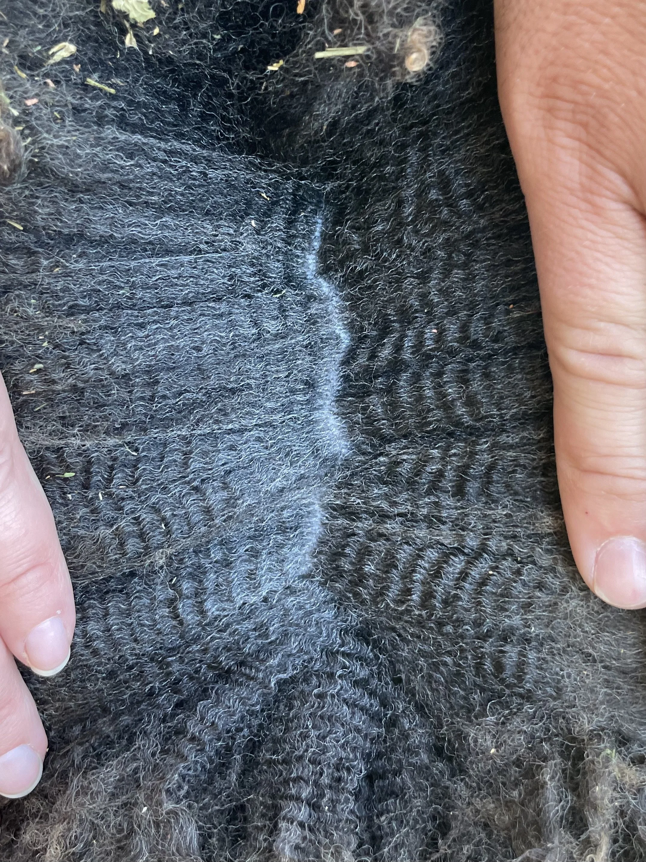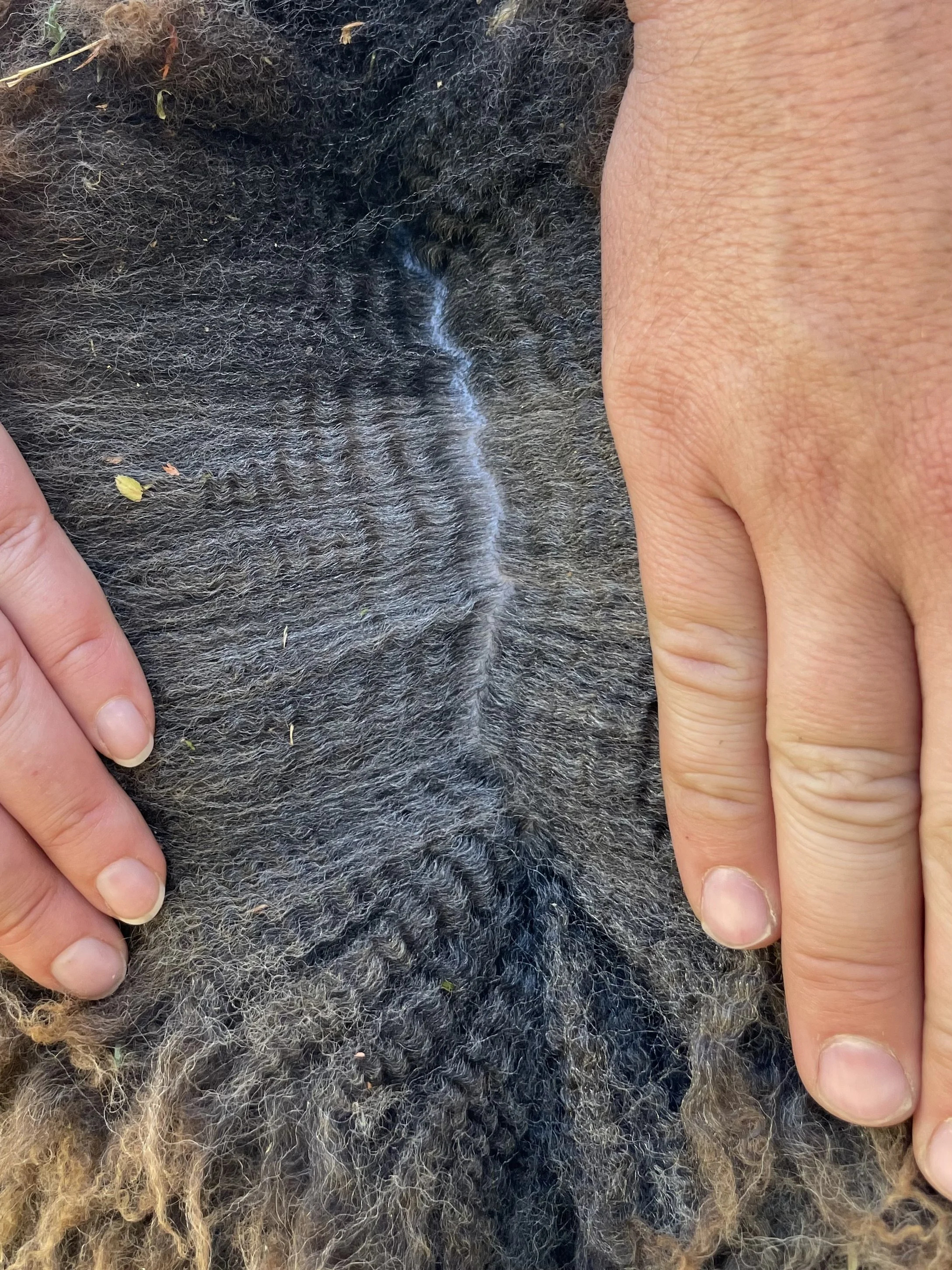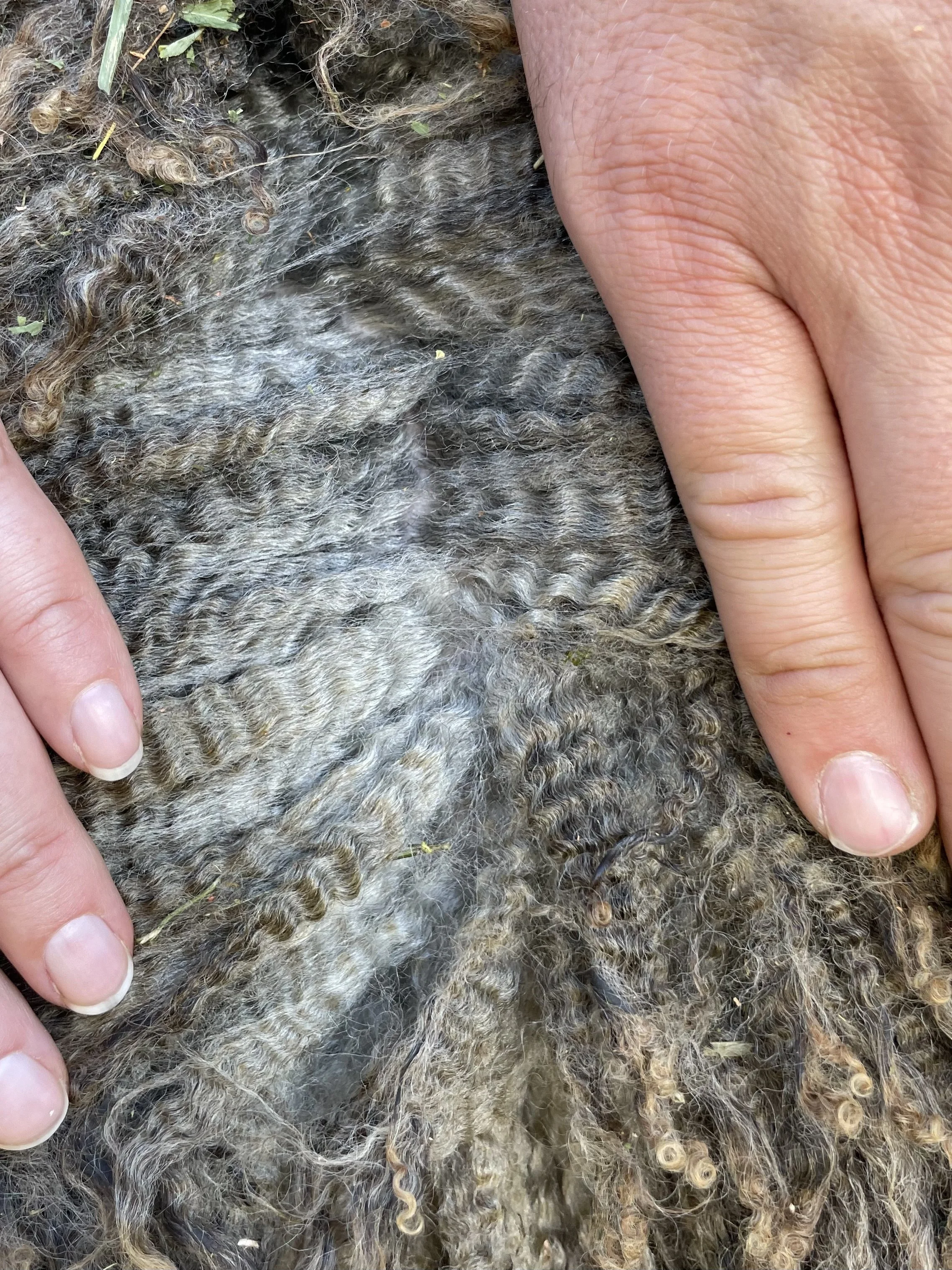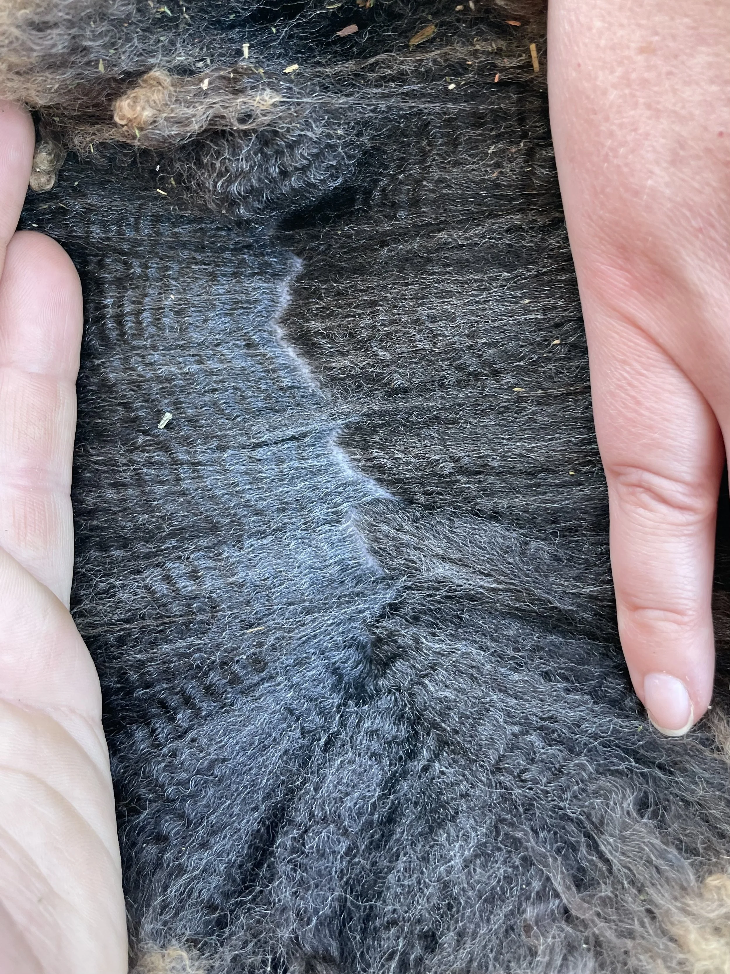 If you are looking for a fantastic fleeced ewe, this is it! Rye has the classic Romney fleece with a great hand. The solid dark color is also wonderful. She has a good structure, a really complete ewe lamb. Rye has been handled as a show lamb. She is the 2025 Black Sheep Gathering Champion NC Romney Ewe. $800