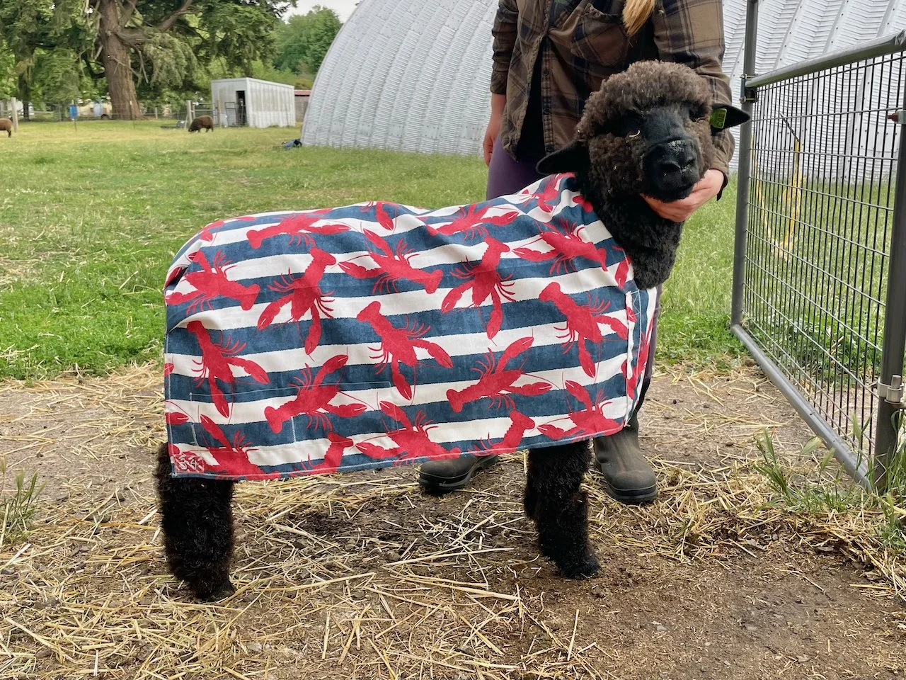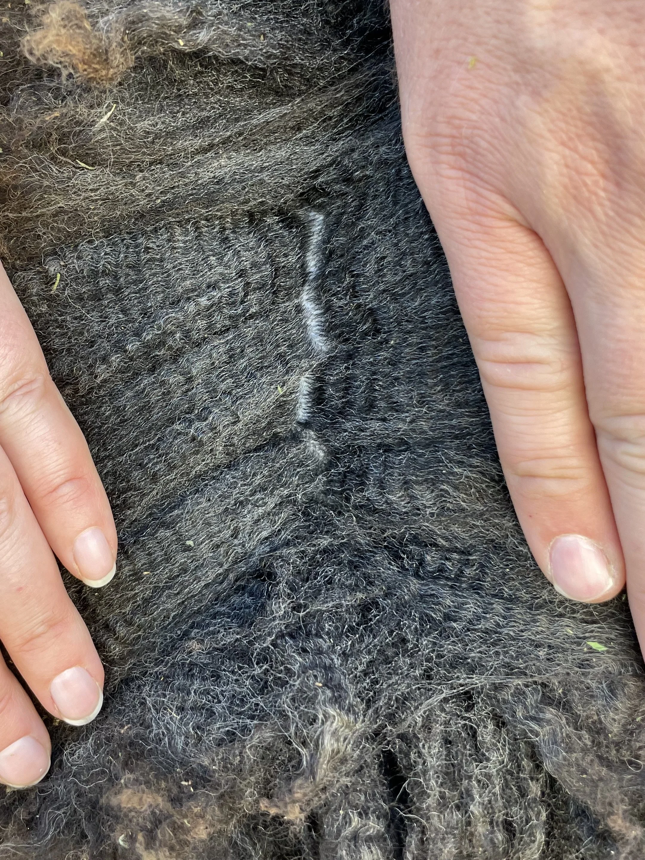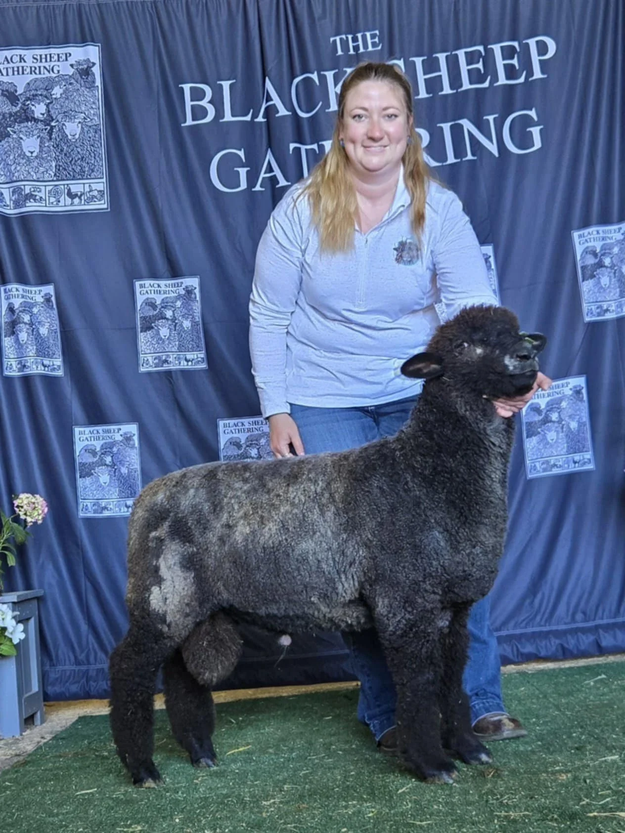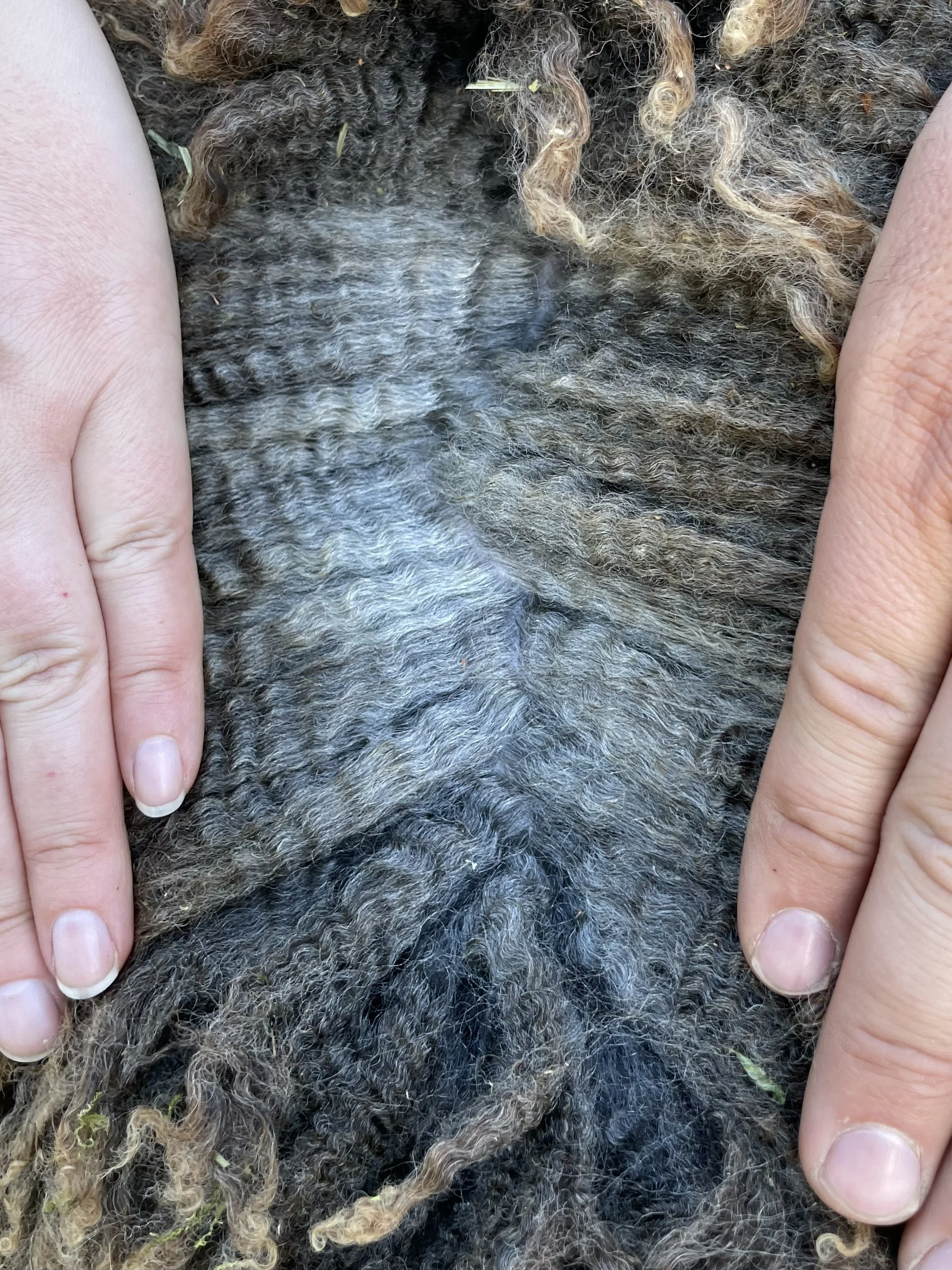 If you are looking for a fantastic fleeced ewe, this is it! Rye has the classic Romney fleece with a great hand. The solid dark color is also wonderful. She has a good structure, a really complete ewe lamb. Rye has been handled as a show lamb. She is the 2025 Black Sheep Gathering Champion NC Romney Ewe. $800