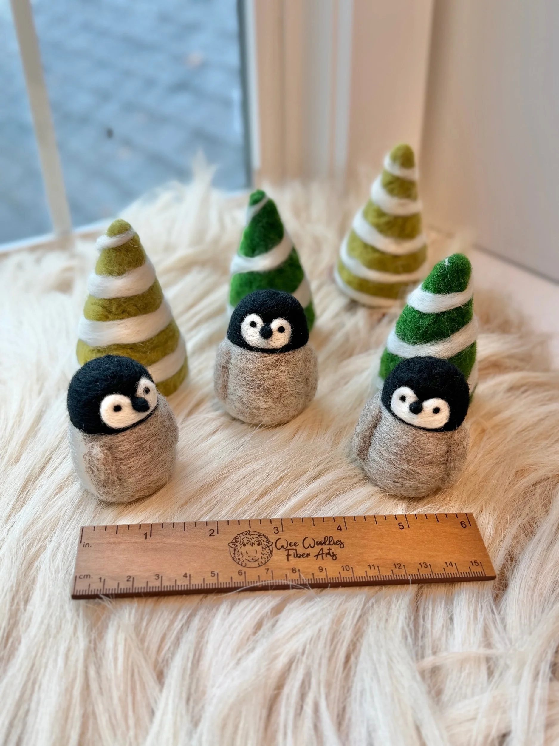 All supplies required for this class are included and you will walk away with a finished baby penguin, felting knowledge, and a felting block/needle for you to keep!